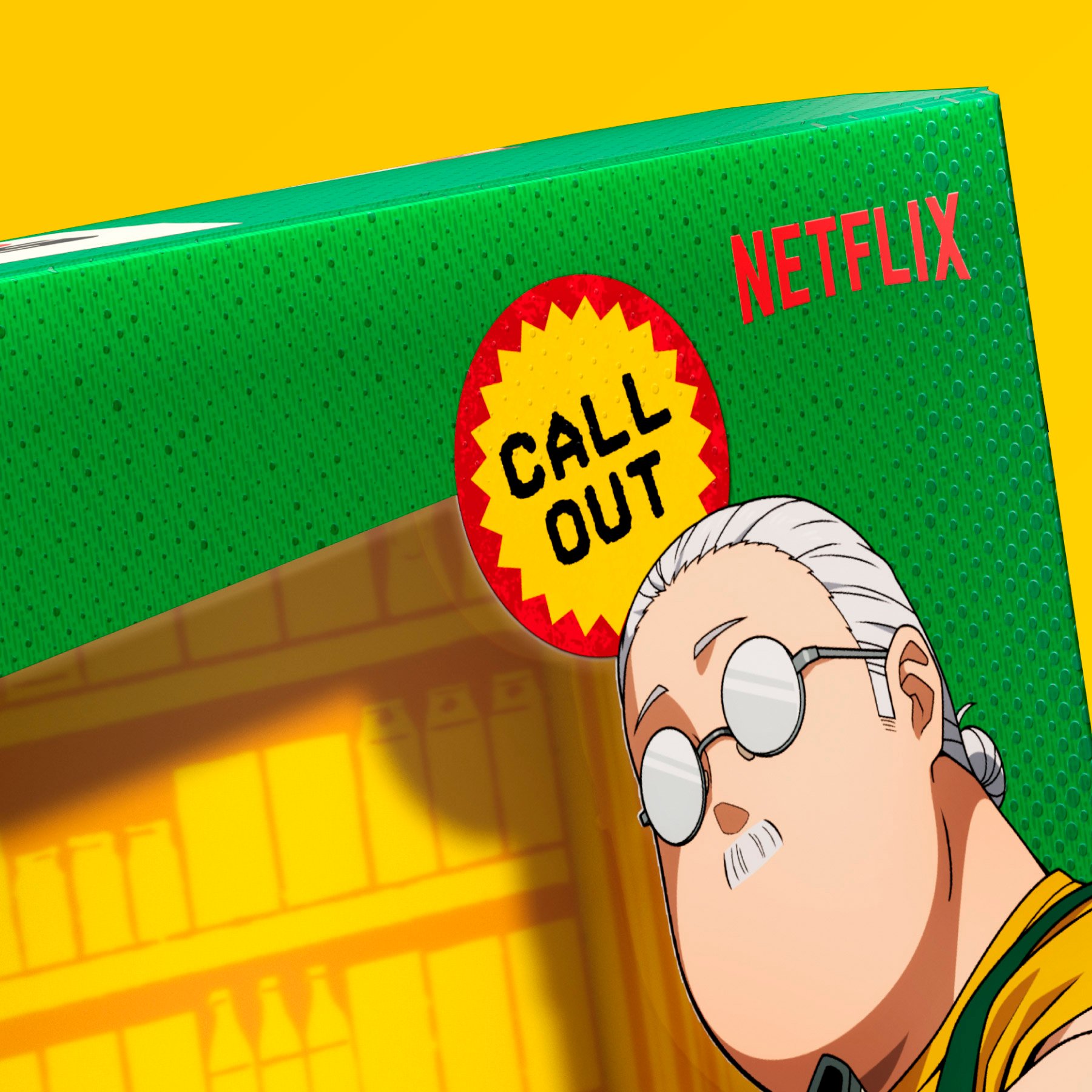For the Sakamoto Day’s grand opening at Netflix’s Los Angeles store, we created a one-off specialty box inspired by Taro Sakamoto’s convenience store from the anime. Fully printed inside and out, the box served as a tactile nod to the series’ setting, inviting fans to fill it with curated goodies—transforming a retail moment into a collectible experience.